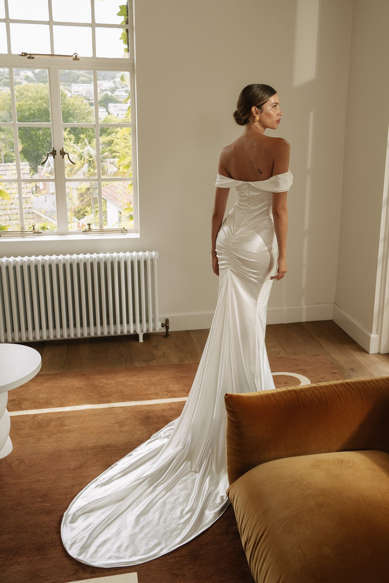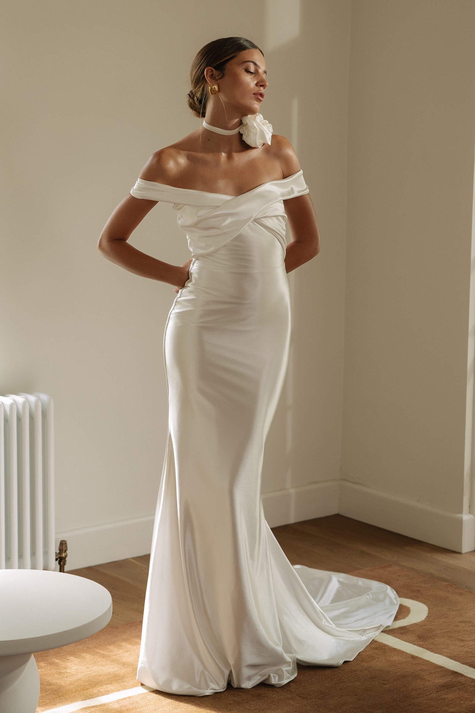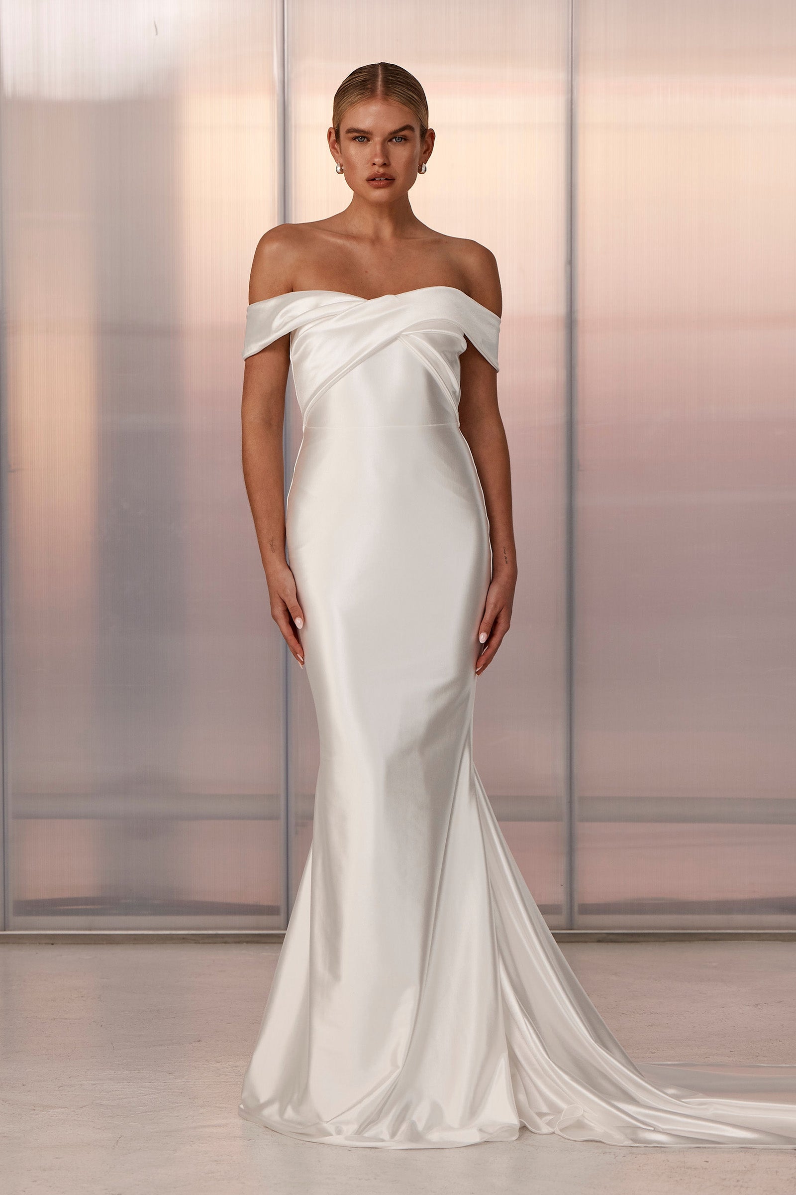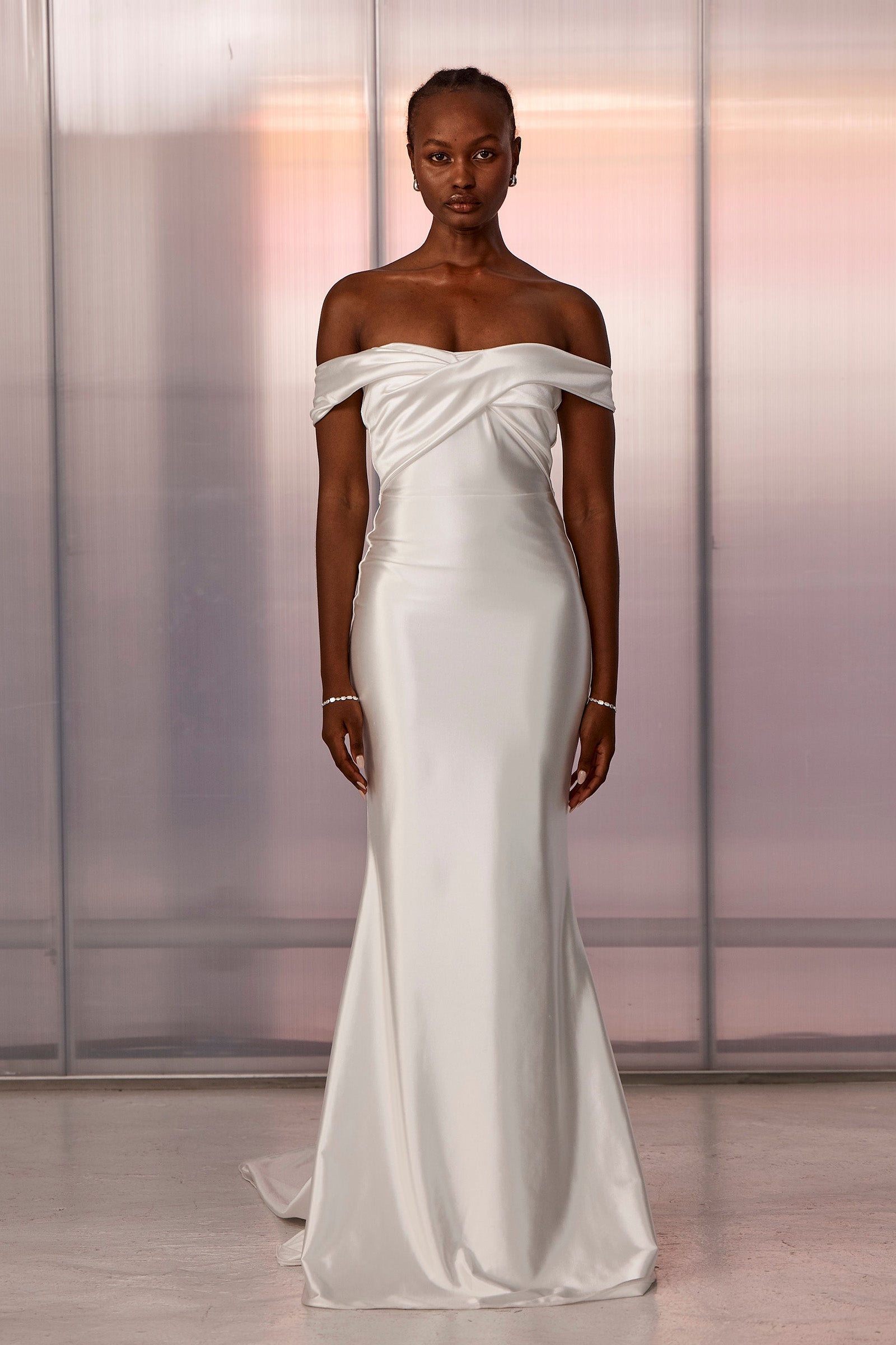 Old Hollywood glamour is brought to life with Cupid. Designed in a pearlescent stretch satin, this luminescent gown gives lustre and dimension while maintaining the comfort and agility our gowns are known for.