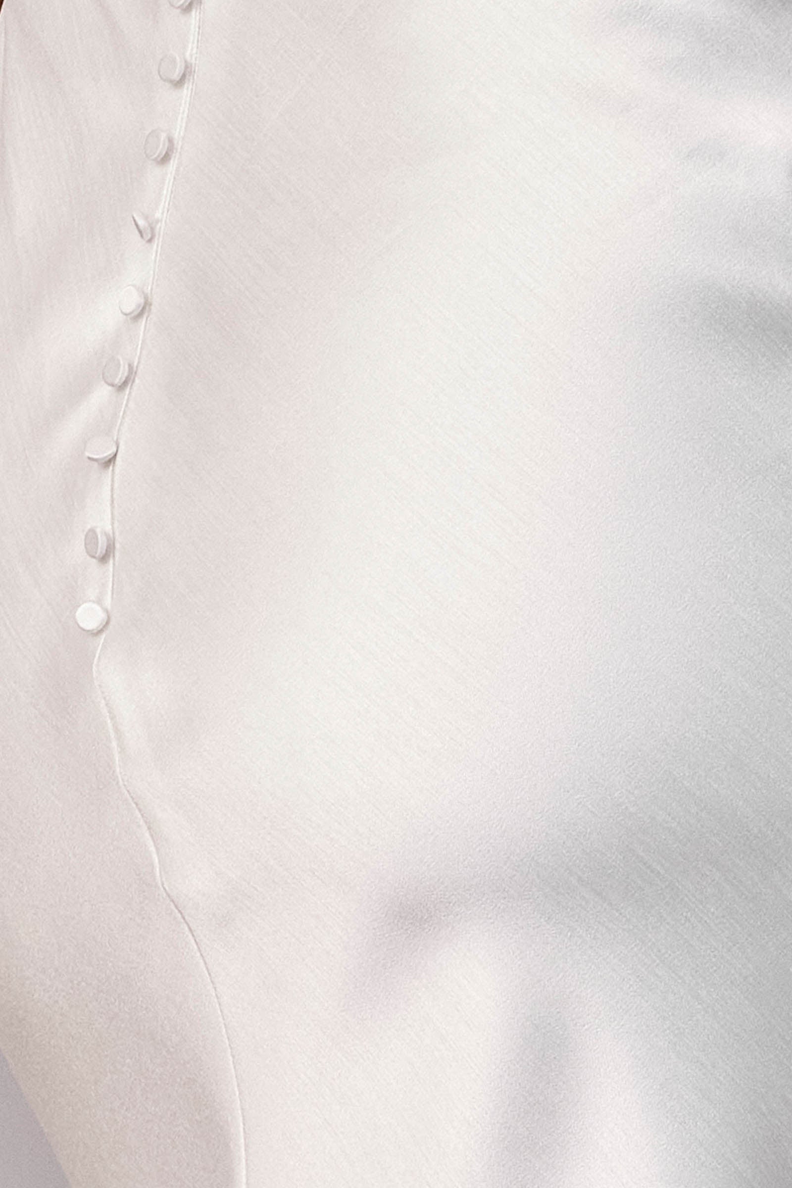 Crafted from dupion satin with flexi-boning, the internal construction is made to skim and flatter the body, offering a structured column fit. Finished with a front-cut out and elasticated puff sleeves, Emory is confident and considered.