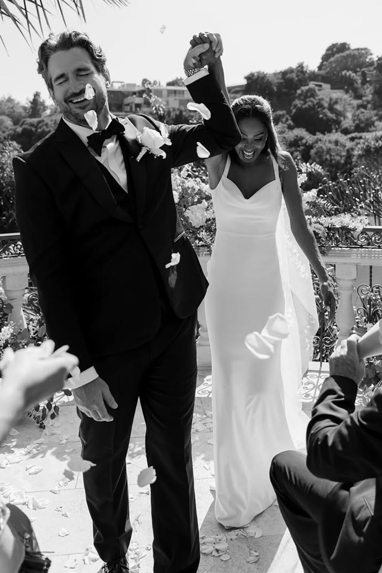 Grace is yesterday and today’s muse. This crepe wedding dress inspires with her draped neckline and clean lines reminiscent of Old Hollywood Glamour.