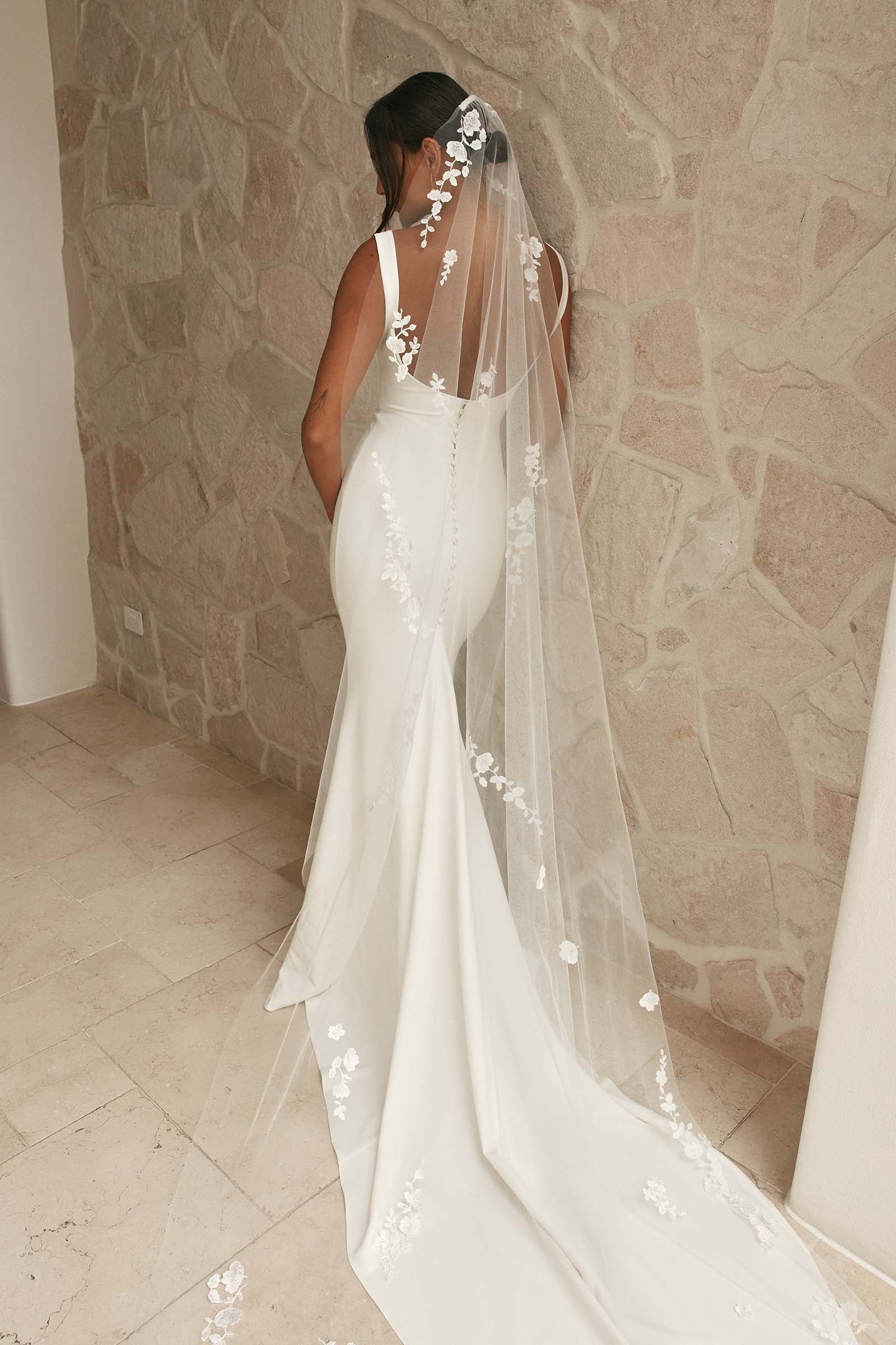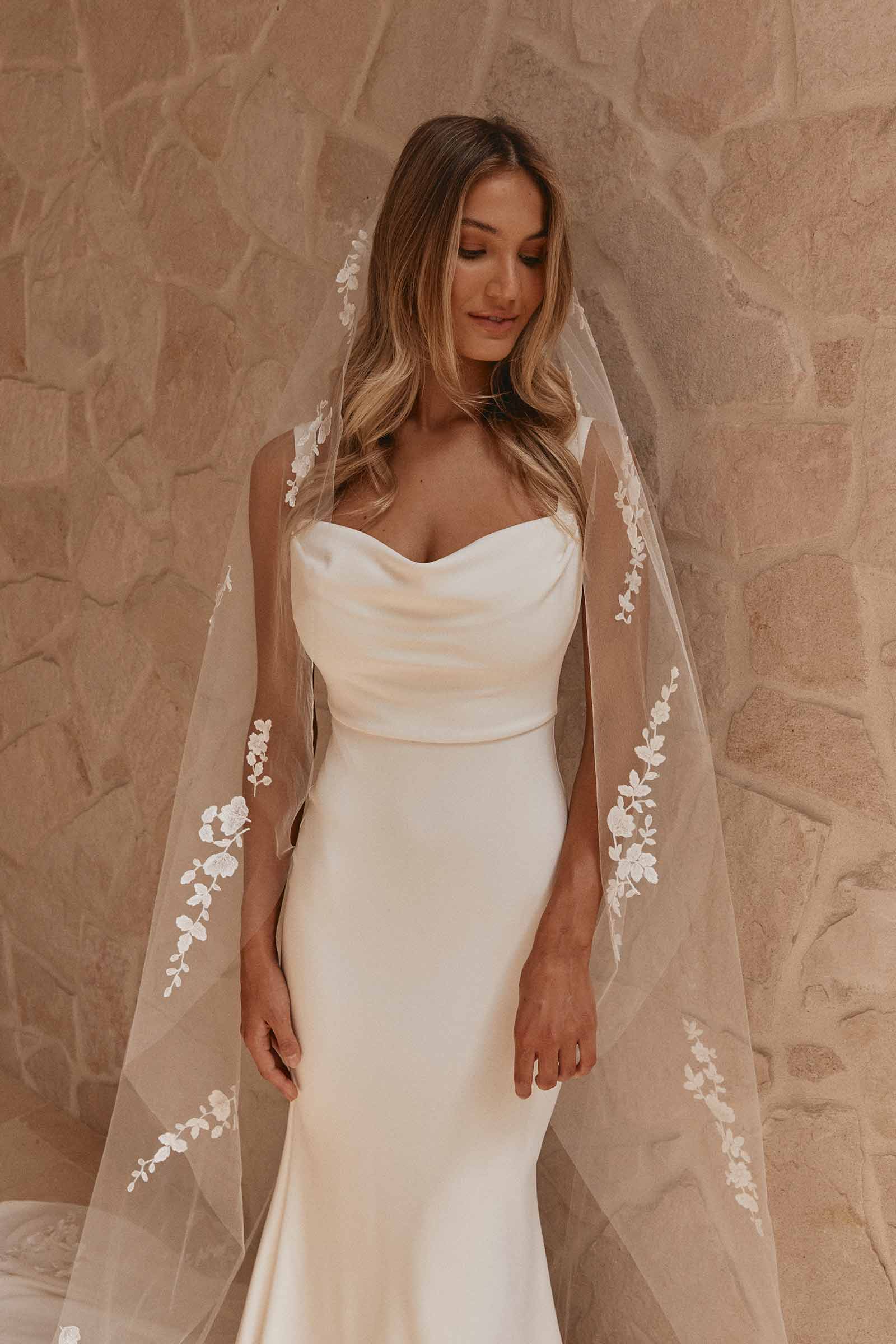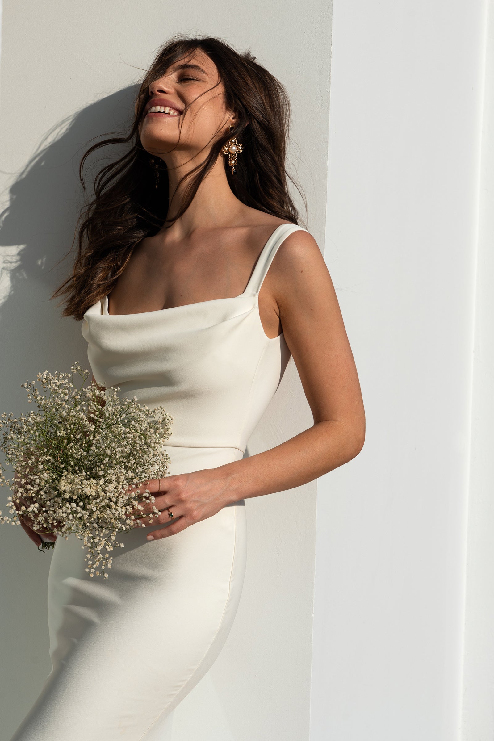 Elegantly refined through crisp ivory stretch crepe, Grace is a contemporary time-honoured silhouette.