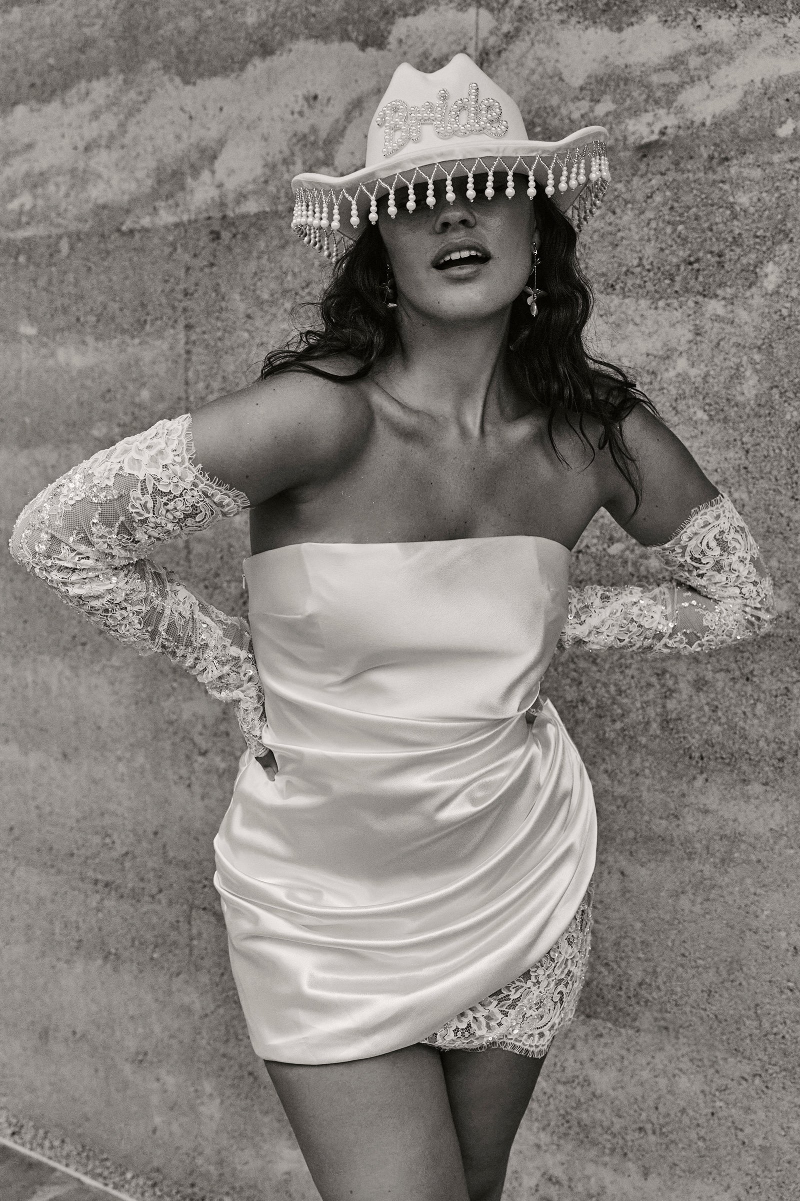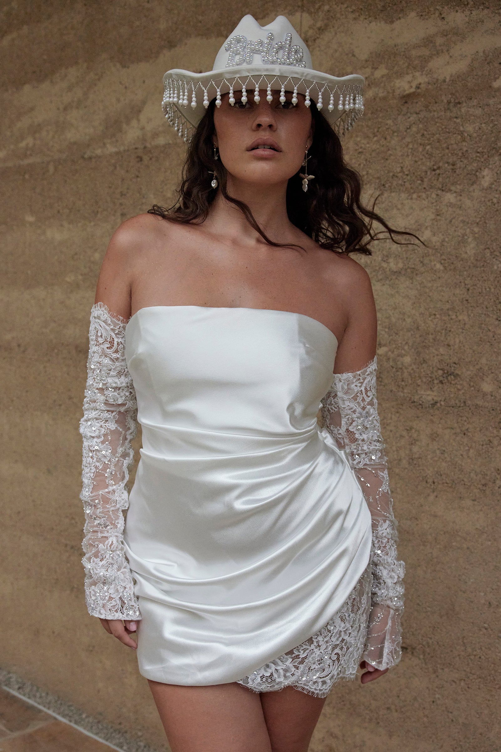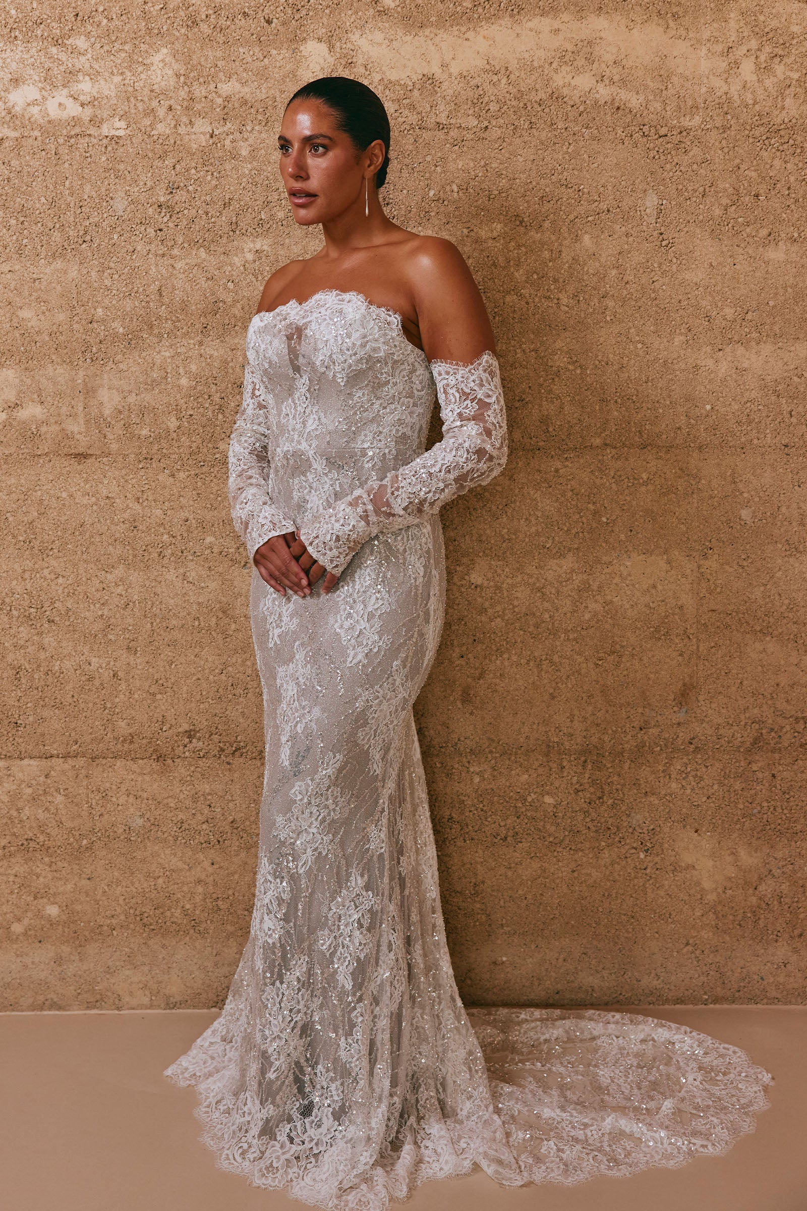 Our sparkly Shimmy Gloves are alive with energy, creativity and luxury. Crafted from corded lace with beading and sequins, these bridal gloves are a visually rich accessory to mix and match seamlessly, transforming your bridal look for any moment.