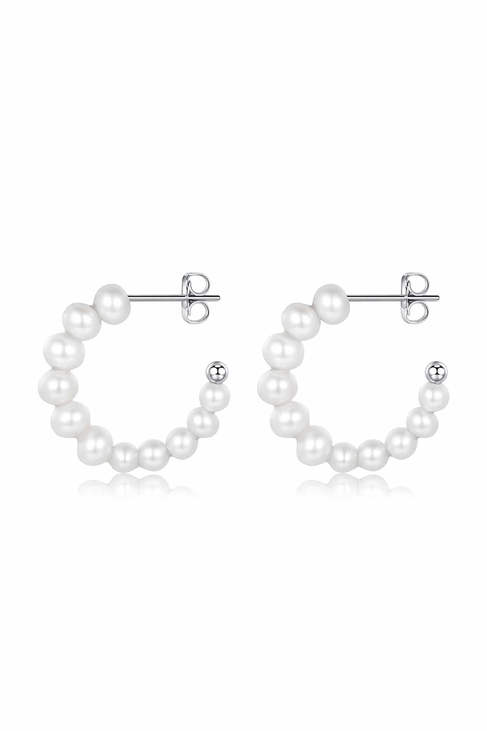 Discover the Solene Earrings — a modern take on the classic pearl. Crafted in sterling silver, these half hoops are delicately strung with freshwater pearls, appealing to the contemporary bride.
