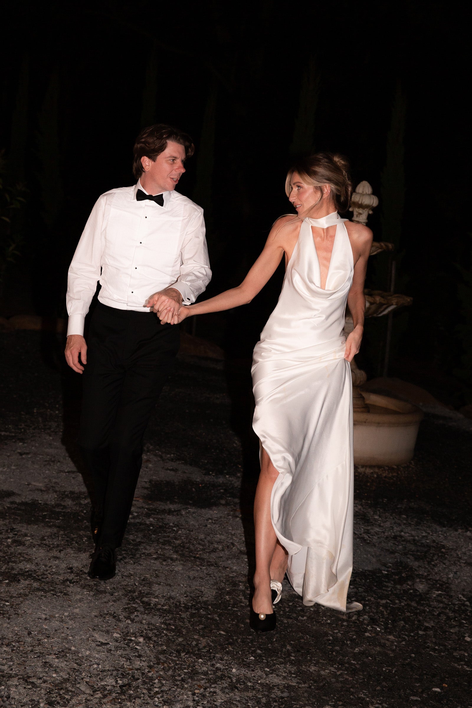 A reception-ready design, Suki is sleek and soulful, crafted from luxe pearl satin that doesn't shy away from the spotlight, making for a show-stopping entrance. Cut on the bias and elegantly draped over the bust, Suki is a backless satin wedding dress designed for every bride.